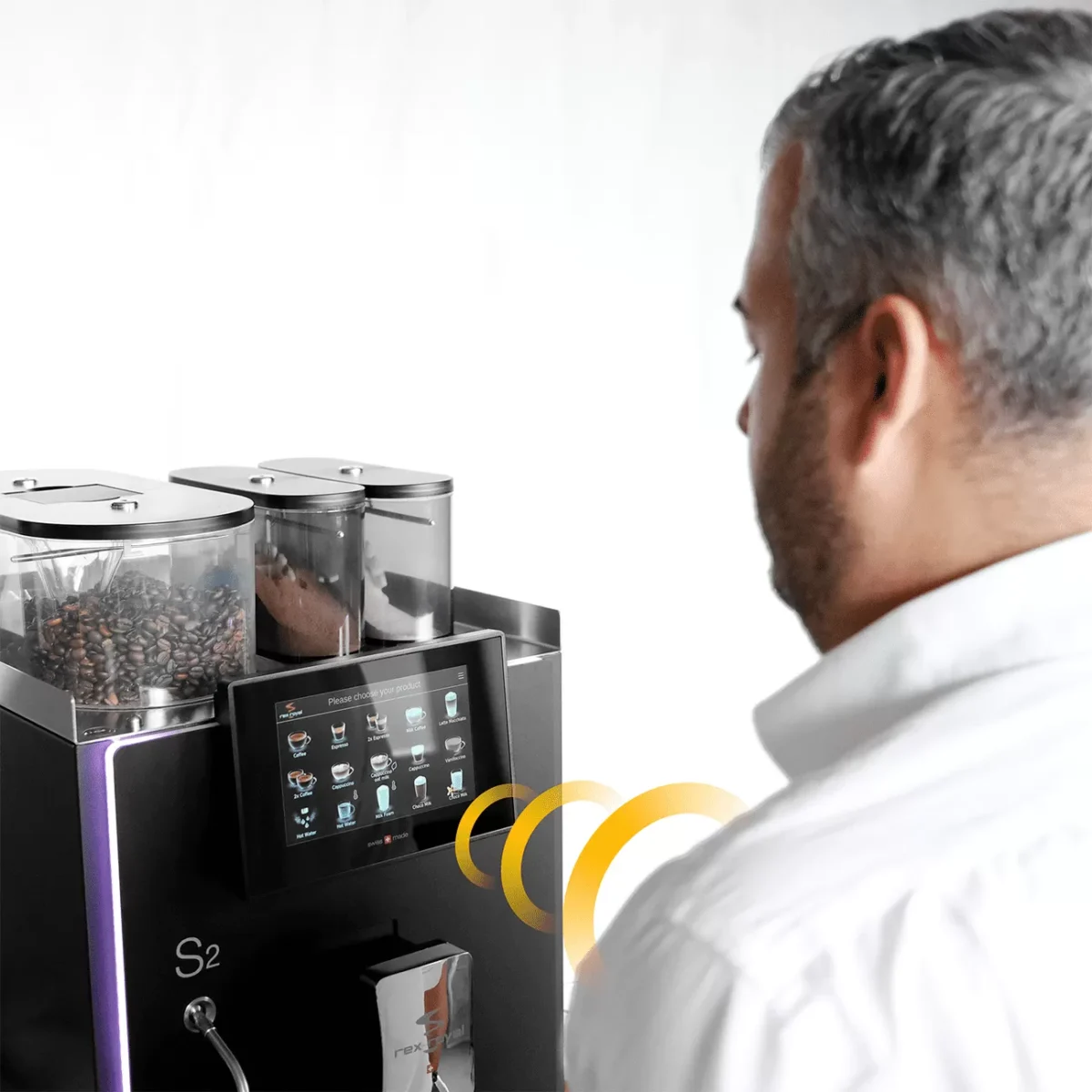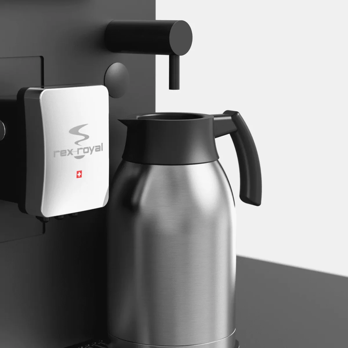 Die Rex-Royal S2 ist eine vielseitige und hochwertige vollautomatische Kaffeemaschine, die sich ideal für den Einsatz in Cafés, Bars und Bäckereien eignet. Mit ihrer hochwertigen Metall-Brüheinheit und einem Fassungsvermögen von 18g bietet sie erstklassige Getränkekreationen. Die S2 liefert im Parallelbezug bis zu 33 Liter Heißwasser pro Stunde (Option; Standard 23l/h), um auch bei hohem Andrang effizient zu arbeiten.